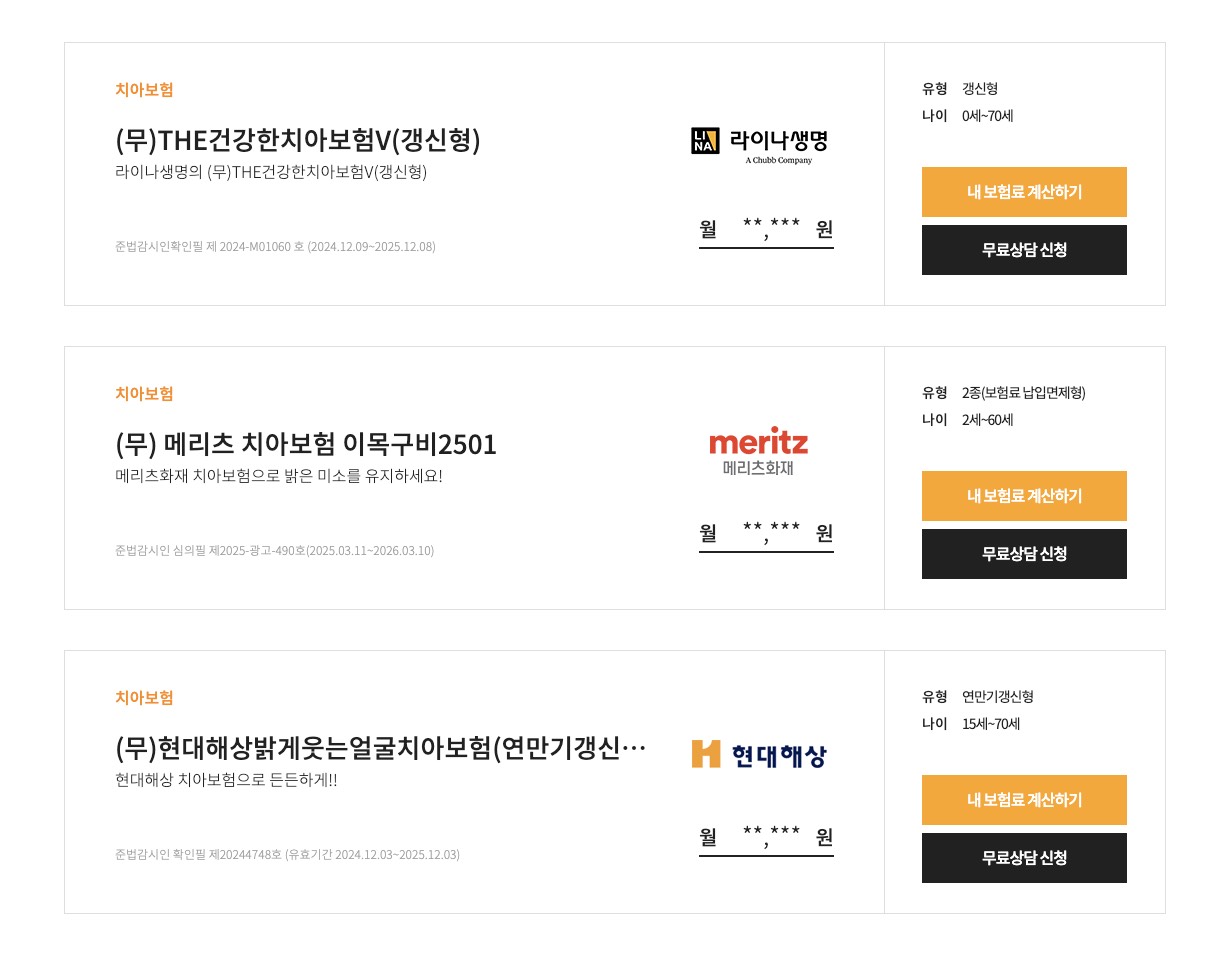 2025년 현재 치아보험은 보장 범위와 보험료의 격차가 큽니다. 비교 없이 가입하면 불필요한 비용을 지출하거나, 보장이 부족할 수 있으니 최소 3개 이상 보험사를 비교한 후 가입을 추천합니다.